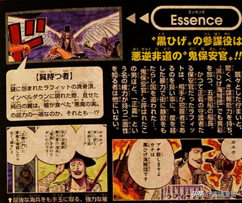 如此有水平的部下,是黑胡子的福气。总之,拉菲特是实力很强的家伙,拥有飞行的恶魔果实能力,懂得催眠的技能,会谈判,做事不怂,还会航海术,关键忠诚可靠,这样的一位成员的加入,是黑胡子成为四皇道路上的一大重要助力,动漫迷怎么看,欢迎留言。点击关注酱铺漫画,看更多的海贼王动画和漫画情报分析。