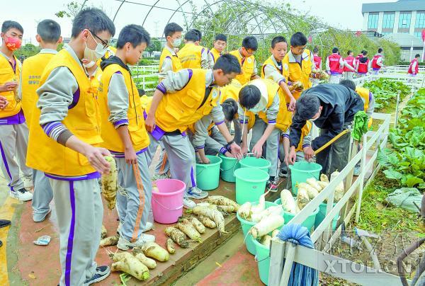 11月22日,湘乡市名民实验中学的300多名学生来到华银生态园开展研学之旅。同学们种蔬菜、采辣椒、挖萝卜、制作咸鸭蛋等美食,现场体验“开心农场”,了解科普知识,学习农耕文化,提升劳动能力。(湘潭日报社全媒体记者 方阳 摄)
