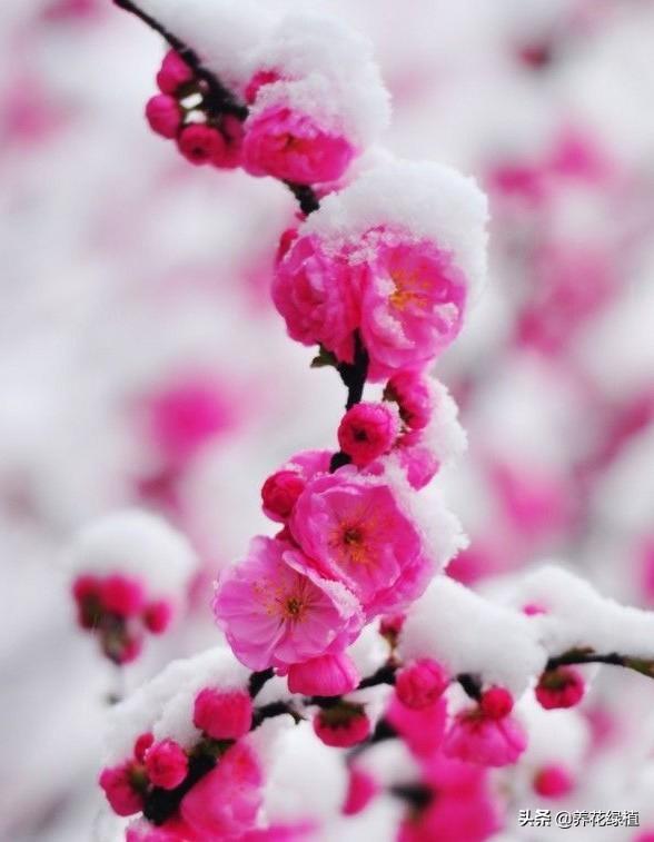 大家对梅花的理解和认知,更多的是梅花的耐寒能力,温度在-10℃左右时,也能生长,能在冰天雪地里,含苞怒放,欺霜傲雪,深受人们赞誉。