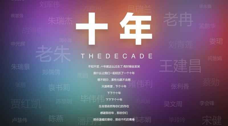 那些年我们曾朝夕相向/一起玩笑一起惆怅 /这些年我们也有过彷徨 /为了生活也为了理想 /一转念却已过了十年……最初听到这首歌,是在辽宁省出差开车的路上。十年,似弹指一瞬,快的令人来不及品味。十年前,大学毕业时的青涩;十年间,从工作步入小家庭的责任与担当;十年后,重新出发,重新思考,重新定位。十年,有太多的故事,太多的回忆,这些都是成长的经历,在岁月的不断荡涤下,我们变的越来越成熟。