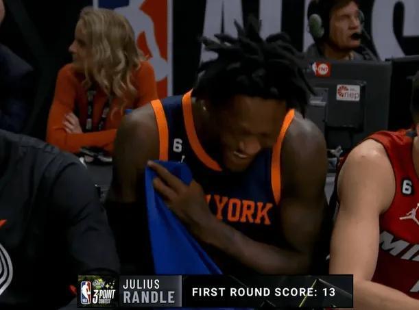 兰德尔作为三分大赛的候补选手,前期的投篮还算稳定,后续由于错过了太多花球,导致只拿下了13分