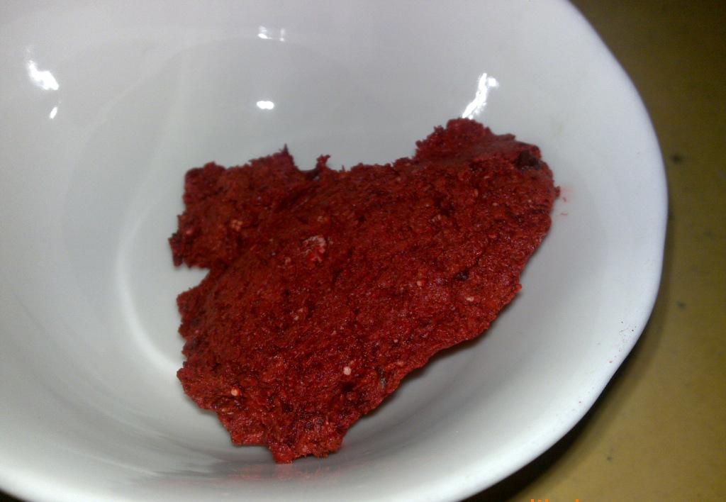 2、取高山红泥适量调入冷开水呈粘稠糊状。