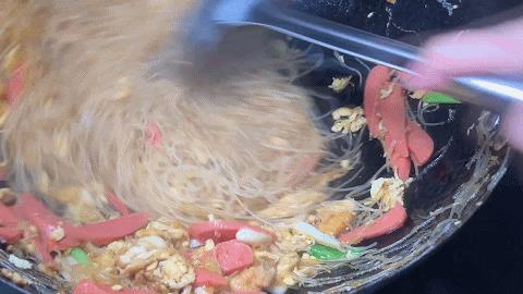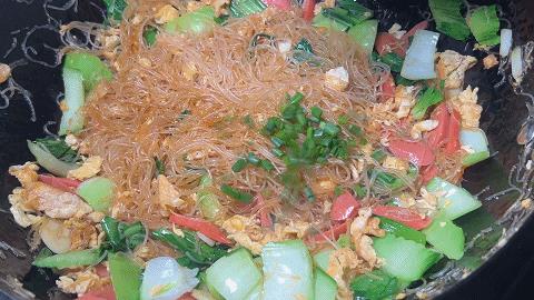 路边摊的炒米粉做法来啦,加小青菜和火腿肠,看着都有食欲,好吃