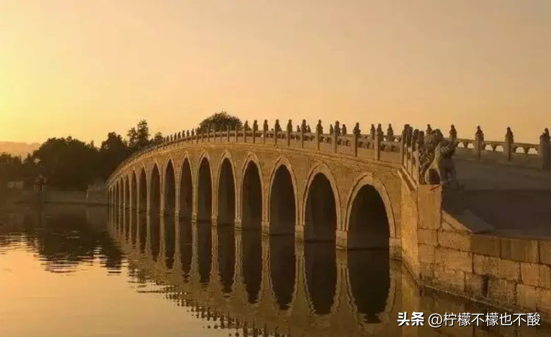 9. 玉带桥:位于北京市海淀区,建于清朝,是颐和园内最具特色的桥梁之一。玉带桥用汉白玉修建,形似玉带,造型优美。
