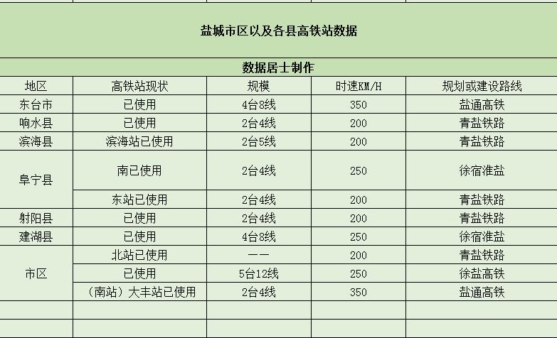 数据居士看法:①高铁可以方便盐城人民出行,可以很快地到达发达的苏南地区②高铁的建设可以让企业家更好地了解盐城地区,投资盐城地区,因为盐城地区是离上海市最近的苏北地区,可以通过上海的辐射快速的发展,试想一下一个连交通都不行的城市谁会来投资?近几年盐城市的发展有目共睹③高铁是国家的基建设施,高铁的建设使得盐城能够加强和省内其他城市的联系,是连接各地的重要通道,加紧全国人民的联系。