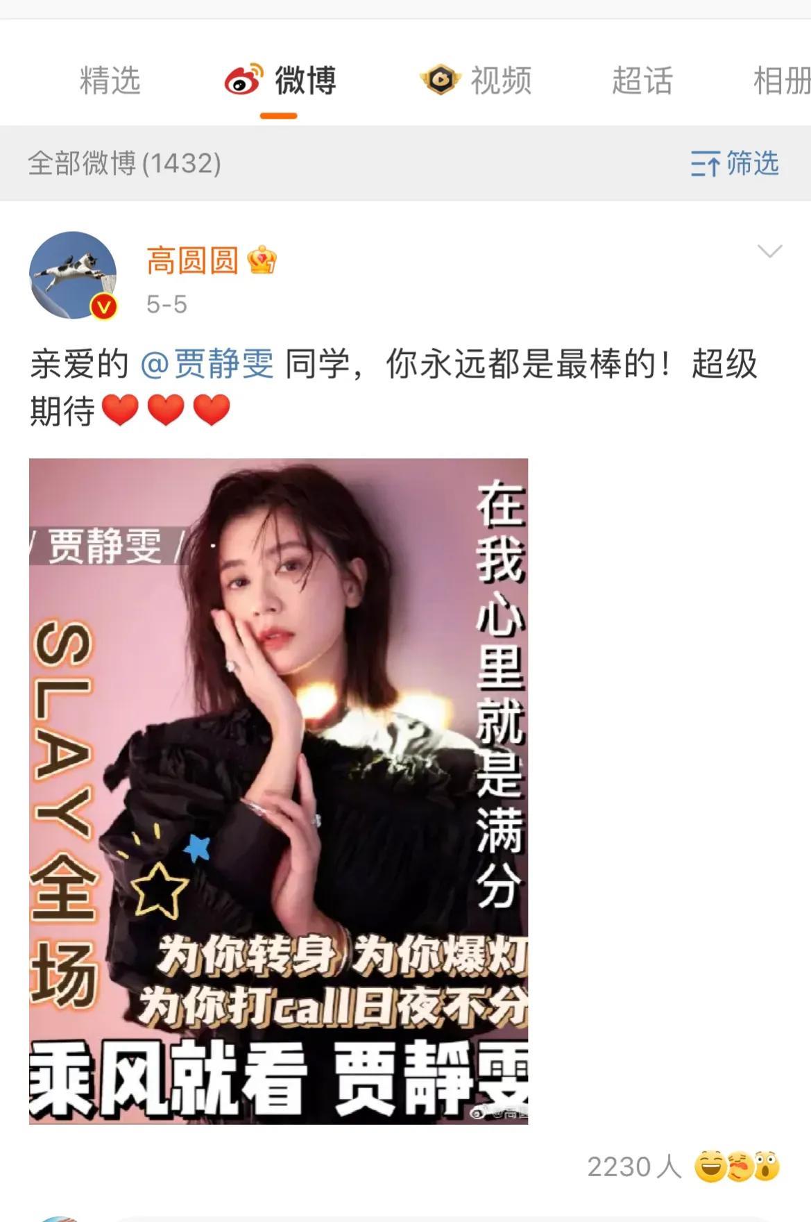 这次来湖南卫视参加节目,她的好闺蜜高圆圆也是在微博上为她加油打气,真是好姐妹,时刻关注和鼓励。
