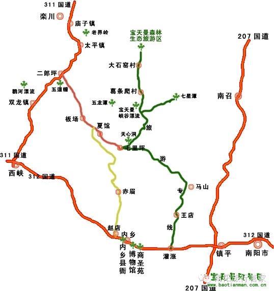 宝天曼漂流景区区位优势明显,距南阳100公里,内乡县城25公里。她位于宝天曼世界生物圈保护区和国家地质公园境内,漂流河岸美景如画:全国最大的油桃基地,奇石滩,孔雀山,柏山四个庙,西施村,幸福渠,将军岭……..众多美景美不胜收,还有翱翔的仙鹤、欢乐的小鱼伴你左右,白云、碧水、青山、阳光、奇石、沙滩……朋友,来吧。这里值得您游玩,因为这里是人间仙境,世外桃源;这里值得您漂流,因为这里是漂流胜地,水上乐园。