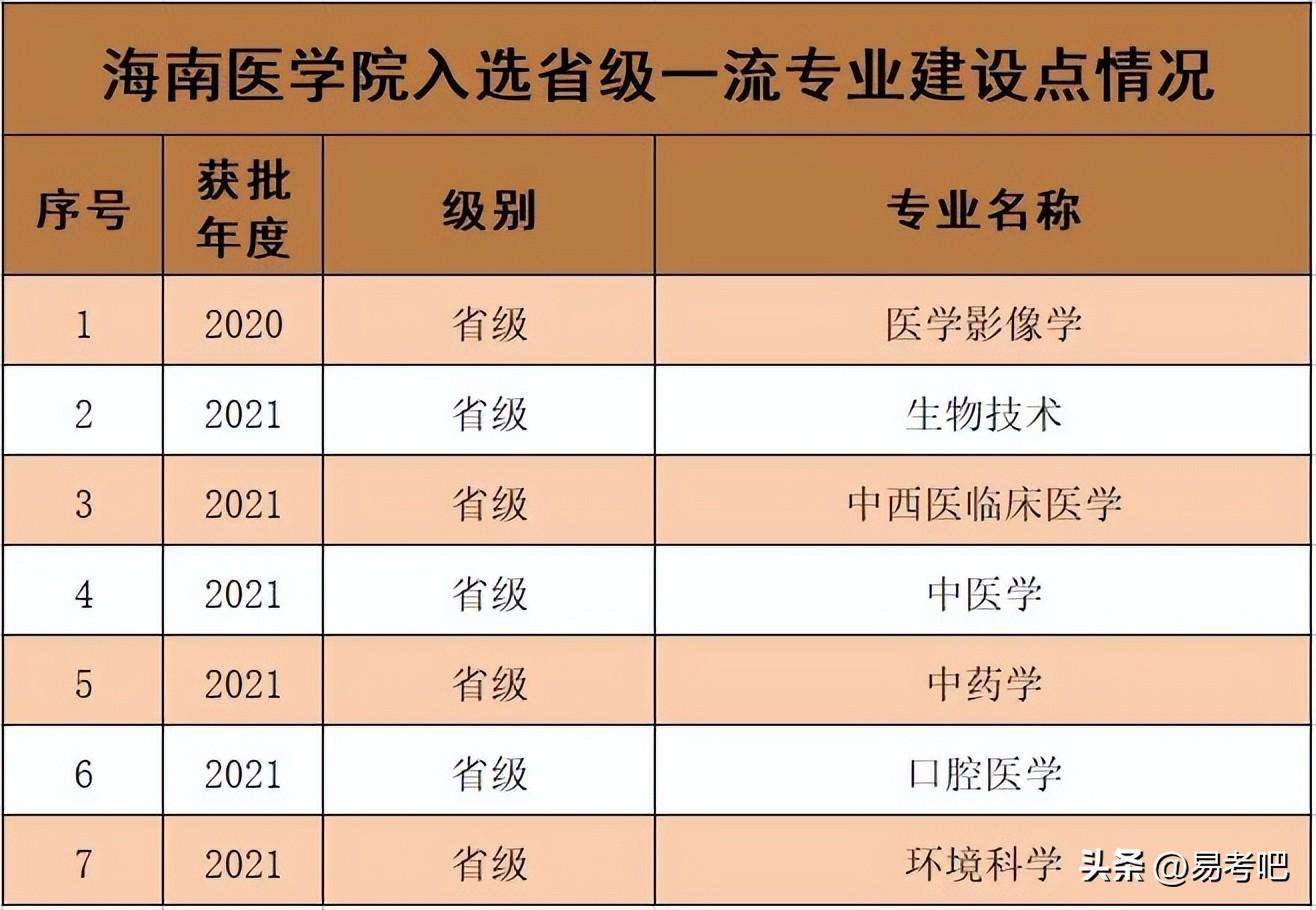 海南医学院一流本科专业有临床医学、药学、护理学、医学检验技术、预防医学、医学影像学、生物技术、中西医临床医学、中医学、中药学、口腔医学、环境科学等,
