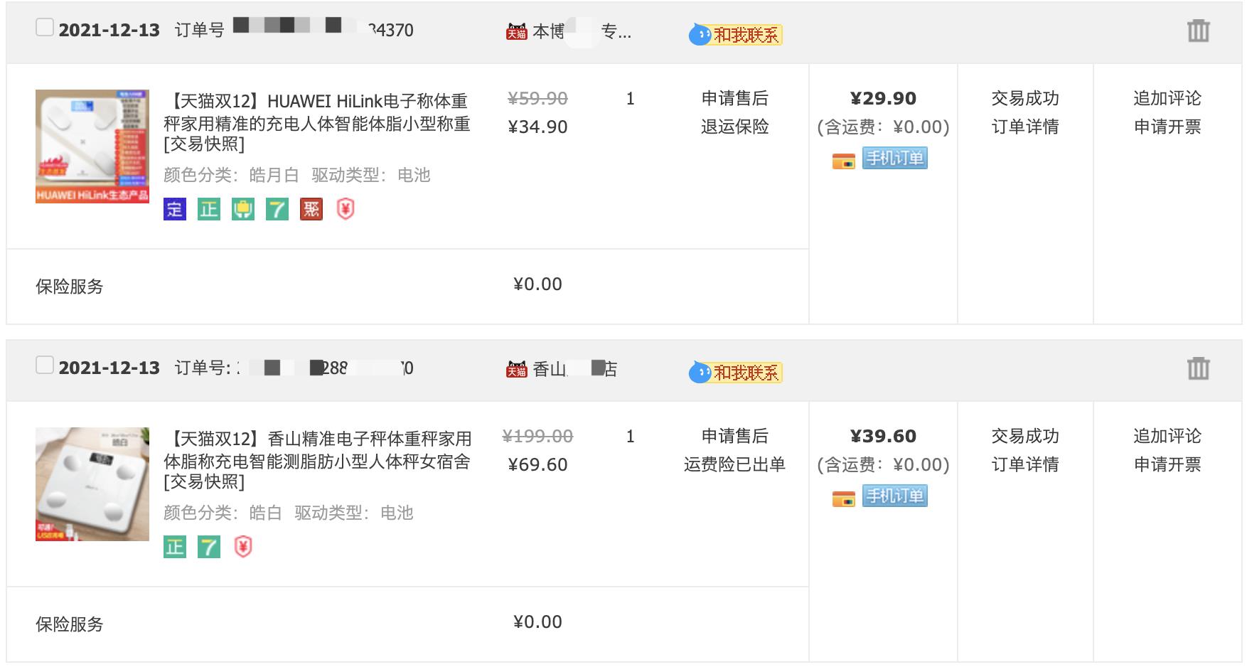 我在去年年底买了3台体脂秤,分别是: