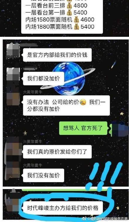 而另一边,粉丝们却在黄牛手中发现了大量门票,并且又黄牛透露这些票是时代峰峻提供的。