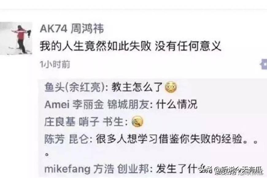在去年年底的时候,周鸿祎发了一条“我的人生竟然如此失败,没任何意义”的个人朋友圈,引发网友广泛关注。