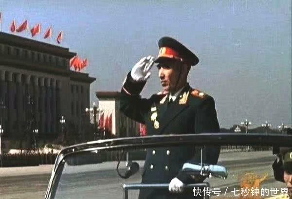 上面图片:1959年国庆十周年担任国防部长与阅兵首长的林彪图片。