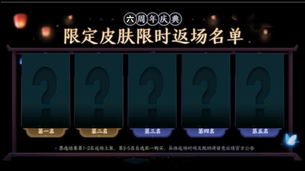 根据目前网上大家的呼声,今年周庆年返场皮肤大致会是伽罗太华,马超神威,关羽武圣,赵云龙胆和甄姬游园惊梦。当然这都是个人猜想,具体还得以投票榜单为准。