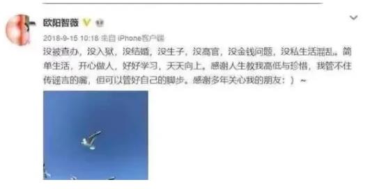 面对舆论欧阳智薇始终没有做出回应,直到2018年才发布了一段话:
