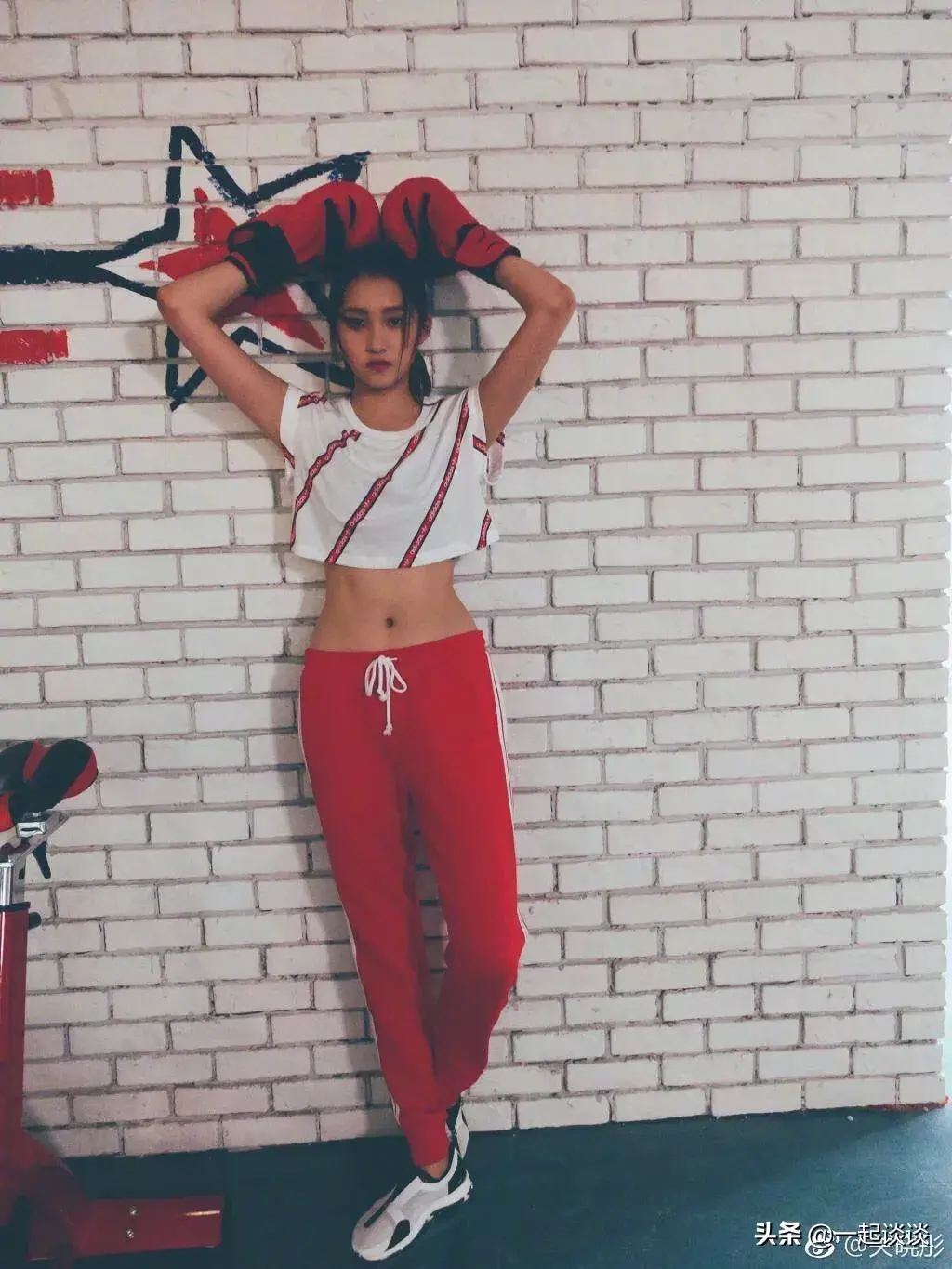 腿精关晓彤也拥有若有若无的马甲线。
