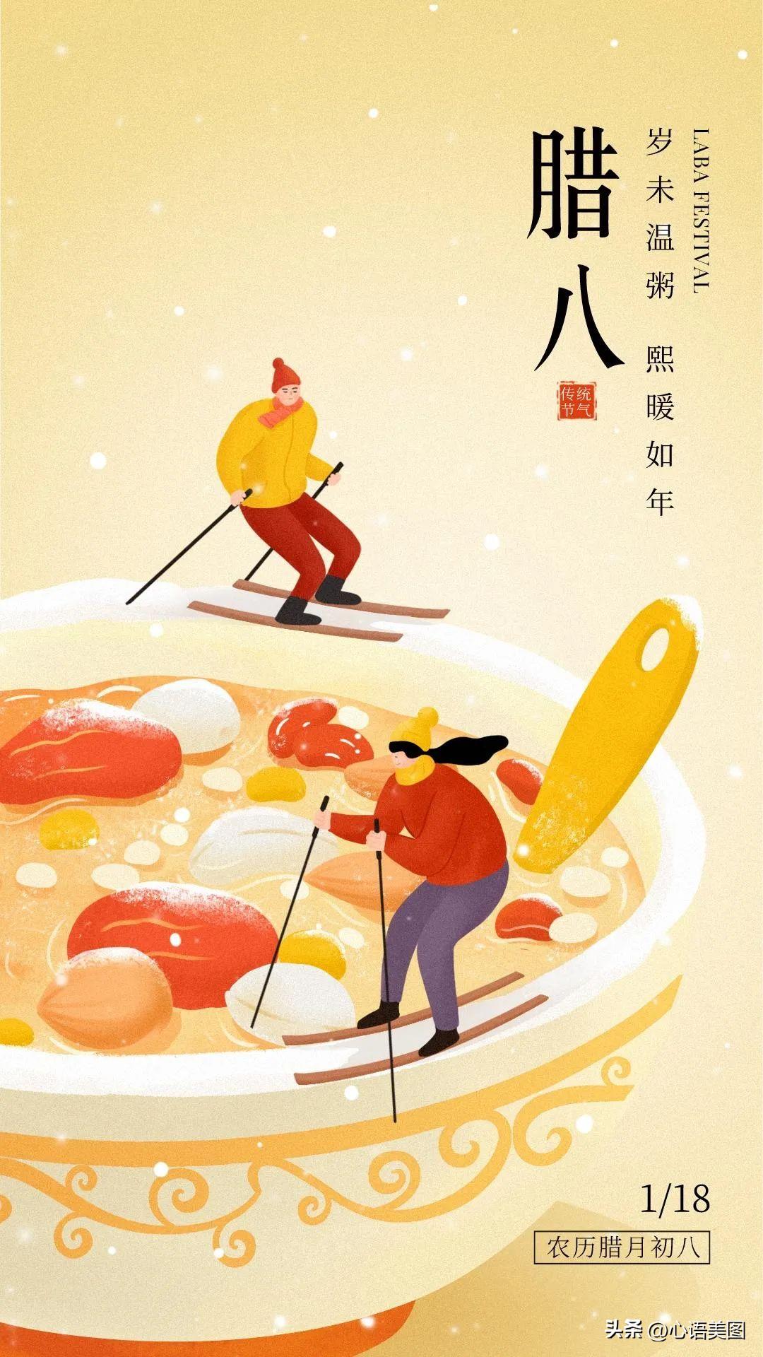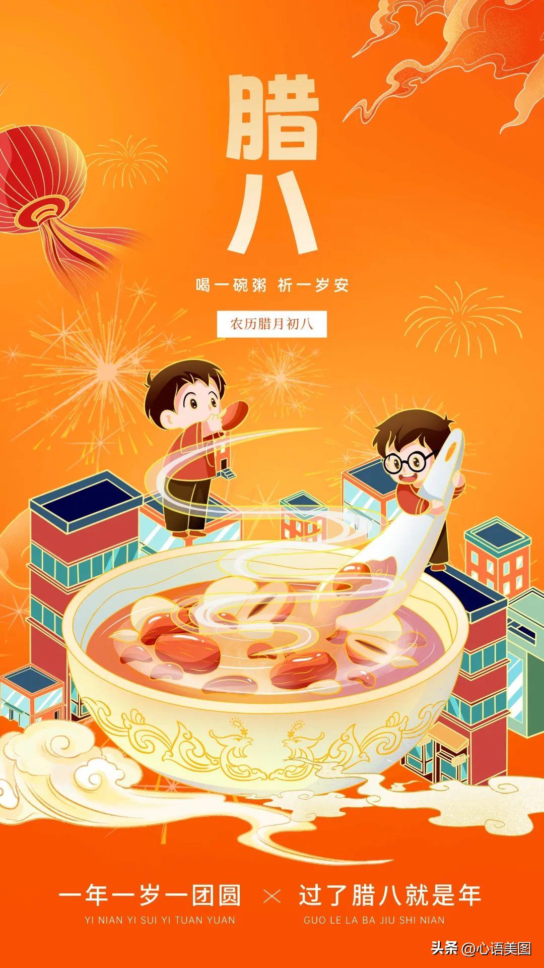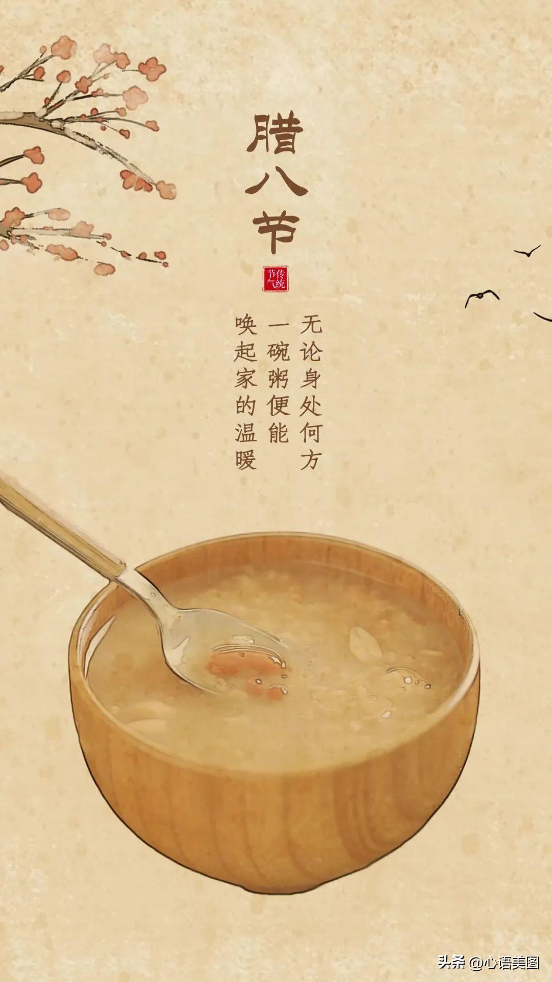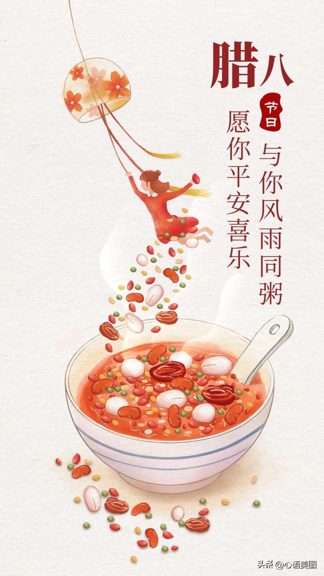 喝一碗,温暖在心头;尝一碗,幸福在里头;品一碗,开心在外头,腊八粥,快乐无忧愁。