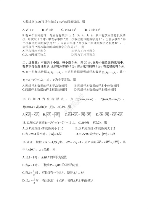 2021年全国一卷新高考数学试题真题及答案逐题解析版