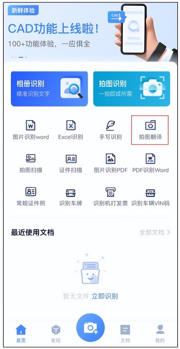 首先打开软件,找到拍图翻译功能。