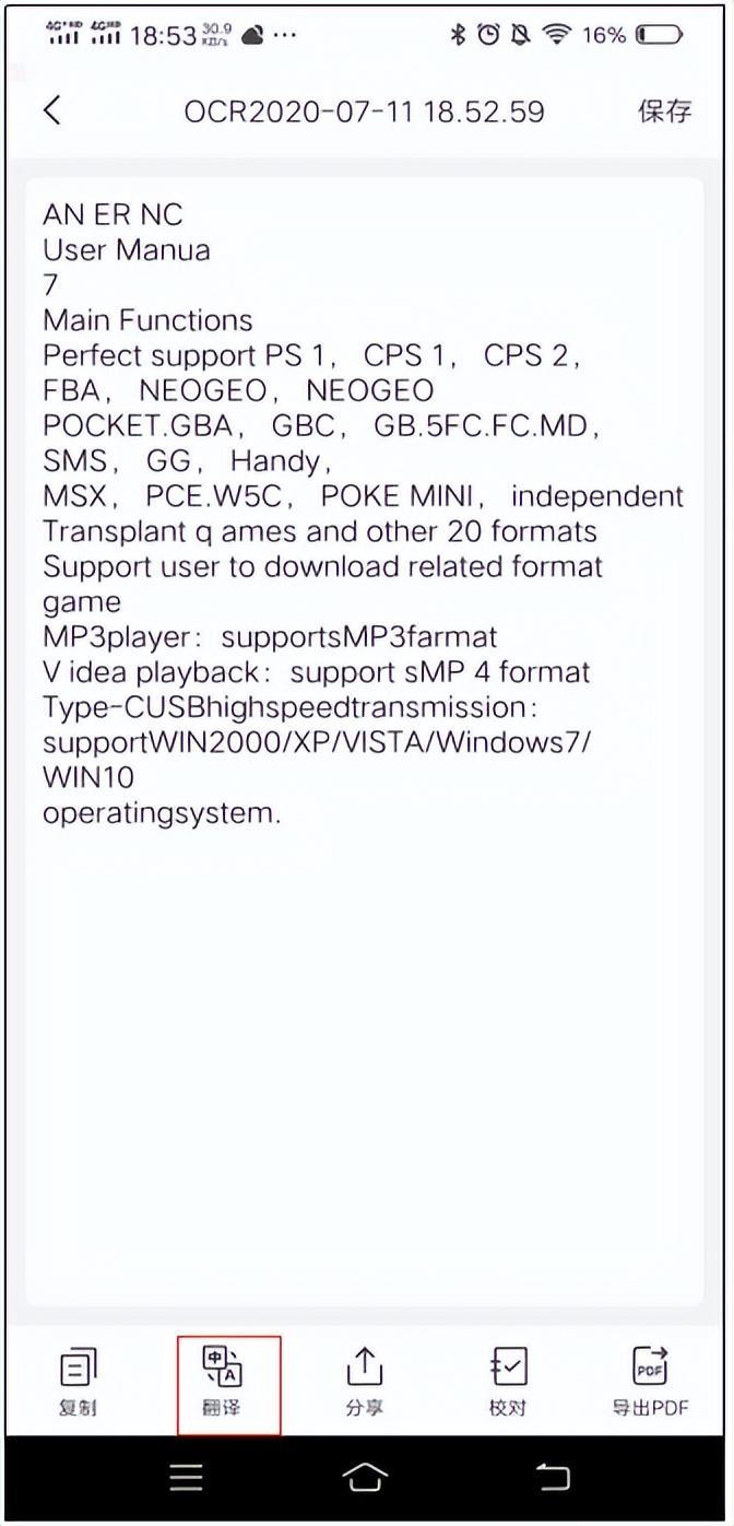 然后就可以看到图片上英文的扫描结果了,点击下方的翻译可以进行英文翻译。