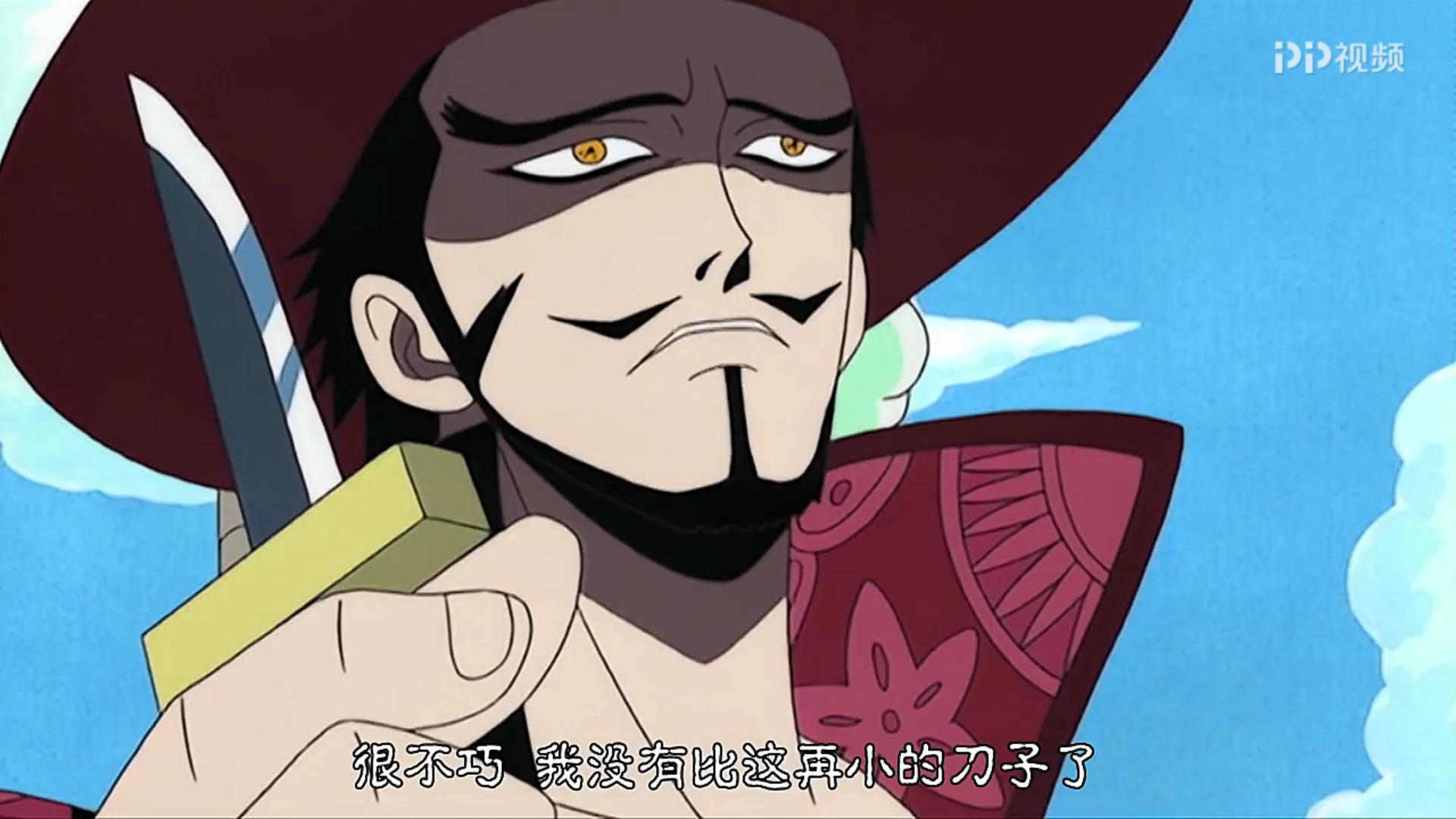 面对索隆的挑战,鹰眼说“我没有比这更小的刀子了”!赤裸裸的鄙视。