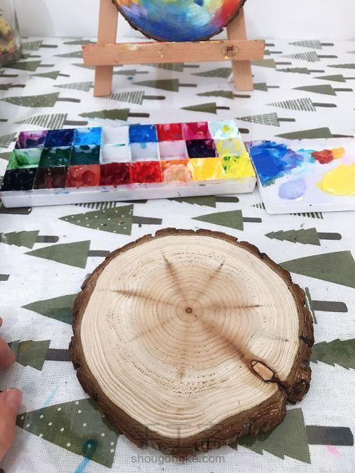 在树皮用记号笔或者黑色颜料画一圈,由深到浅渐变。会一道亮光