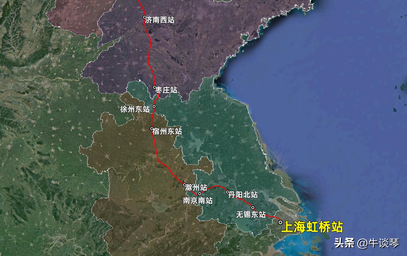 发站:上海虹桥(09:04)到站:吉林(20:51)候车:13AB里程:2305公里二等:961一等:1590.5历时:11时47分注:文中所有线路图均为作者“牛谈琴”原创绘制,如需转载请注明出处!
