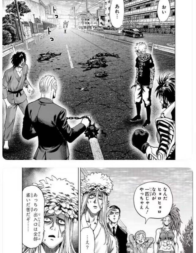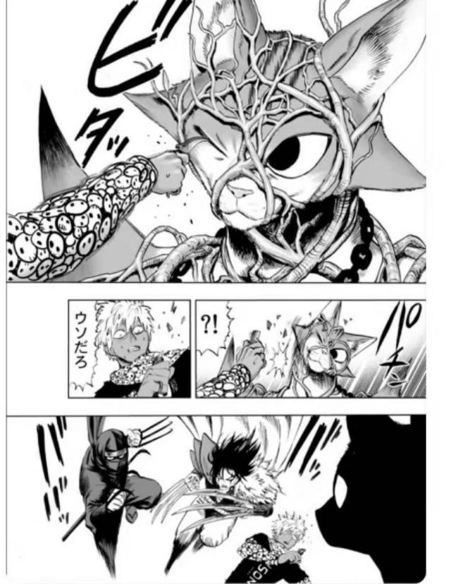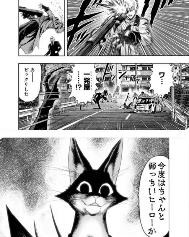 但是这时,在之前话中,怪人协会干部喵喵曾与囚犯对峙过,还间接害死了性感囚犯一众男友,促使囚犯升级!之后的喵喵遇见琦玉,因一招下去对方毫发无损而吓到逃跑!在这时,却突然加入了A级与B级英雄的战斗!