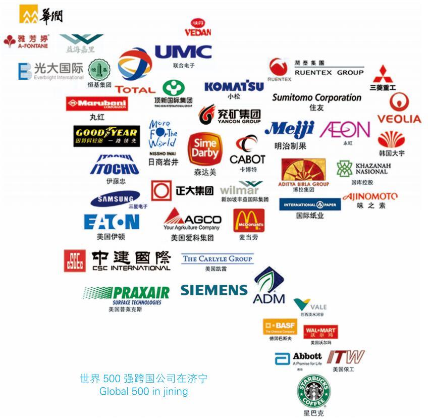 济宁是对外开放城市。济宁拥有1家世界500强企业(兖矿集团)。美国伊顿、爱科,日本小松、伊藤忠,德国巴斯夫、西门子、林德、大陆,意大利倍耐力,新加坡丰益国际及华润、光大、中海外等15个国家和地区的53家世界500强企业落户济宁。