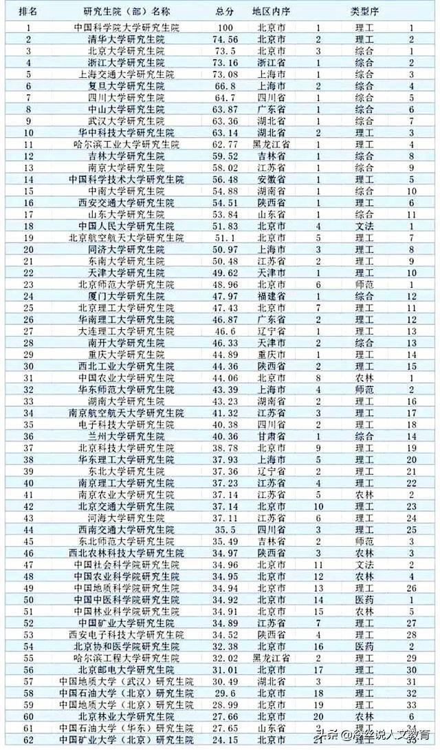 62所研究生院排行榜,国科大亮眼,国家级研究院所表现突出