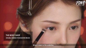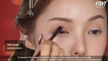 为了不让颜色过于浓重,在双眼皮的褶皱处把它晕开,稍微显出一点酒红色就可以了~