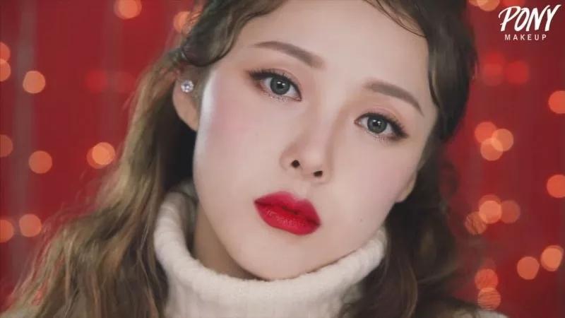 最后一个步骤就是唇妆,关键要选用正红色,突出圣诞的主题~