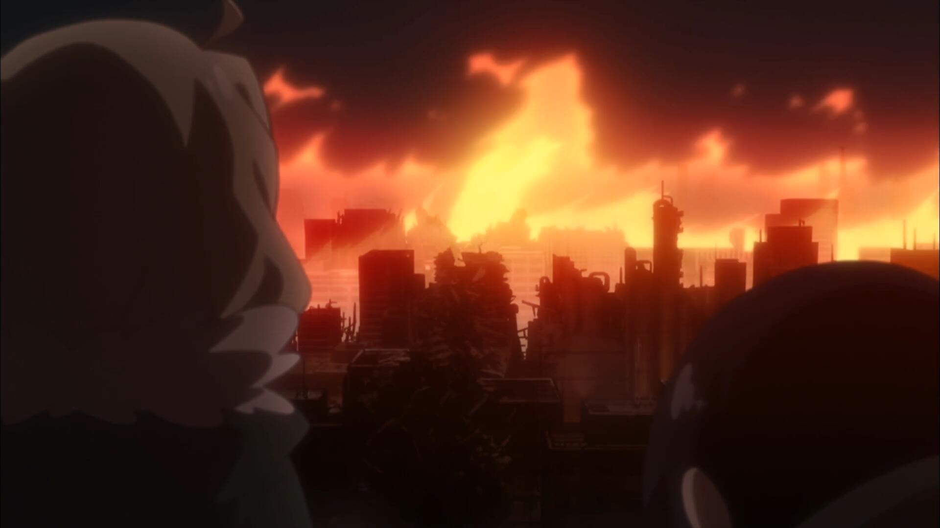 在动画第十一话中,尤莉无意间触发的大规模杀伤武器威力惊人,旋即间就把城市变成了一片火海。伴随着沉重的弦乐,千酱被震惊得说不出话的表情令人难忘。而在旁边狂笑不止的尤莉被千酱一拳打翻,这次就连百试百灵的“萌混过关”也第一次失效...在这一集的故事中,四大核心元素之一的“战争”的残酷性被展露无疑。
