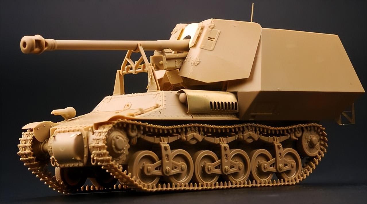 黄鼠狼式坦克歼击车(Marder I),重11吨,搭载一台70马力汽油机,时速38公里,主炮口径75毫米,乘员4-5人。在研制背景上,Marder I与前面提到的Marder I I是一样的,也同样服役于1942年,不过Marder I是在法国洛林37L运输车的基础上改造而成的,并非二号坦克,德国人在攻陷法国后共得到300余辆洛林37L,并将其中的184辆改造为Marder I。