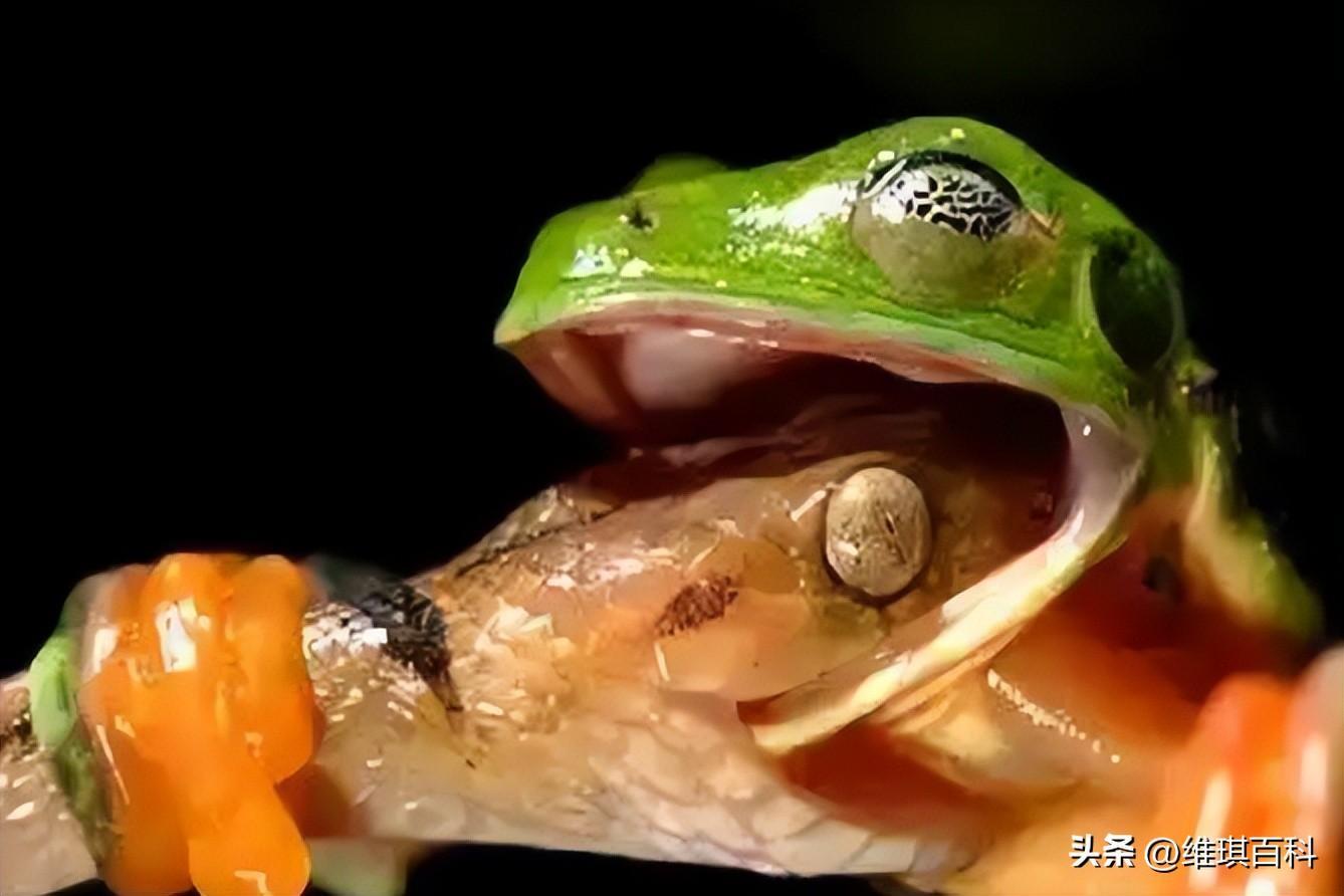 12.这只青蛙居然敢吃蛇?胆子太大了!