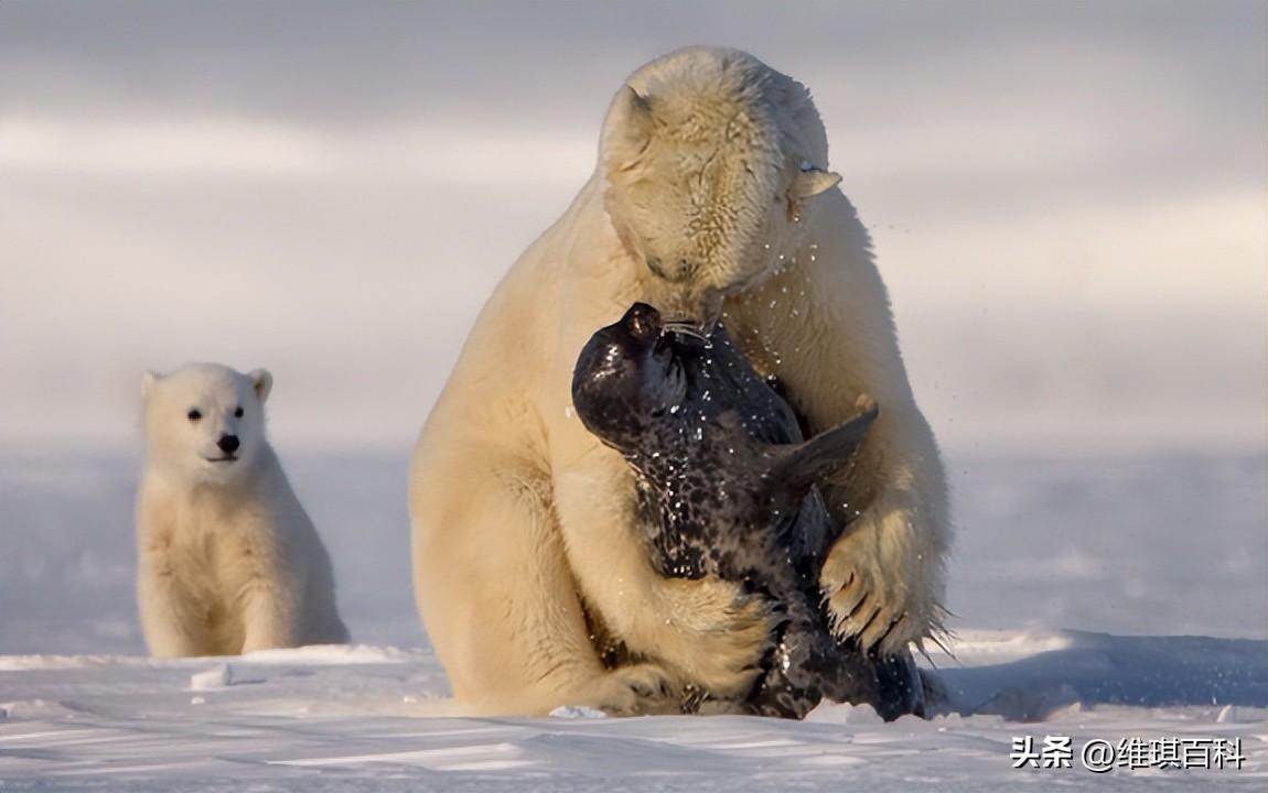 17.北极熊捕食海豹的照片,小北极熊都惊呆了
