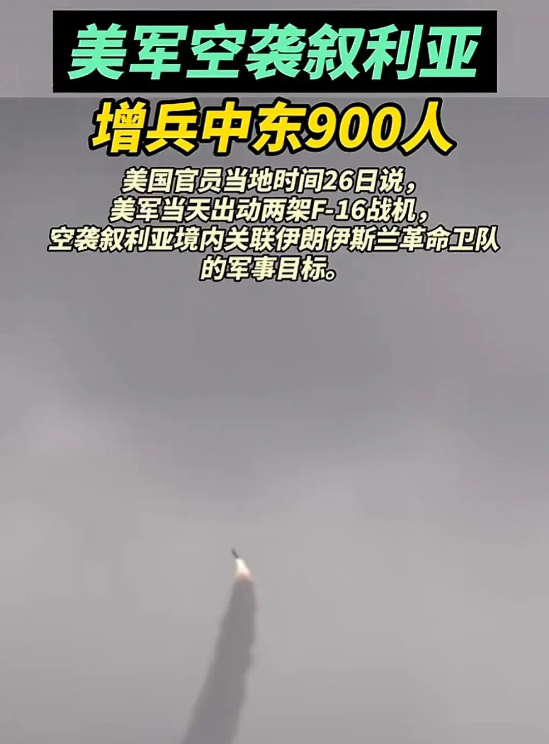 26日,美军发动了对叙利亚的空袭。据悉,此次空袭目标包括叙利亚境内多个军事设施,其中包括伊朗支持的武装组织。美国国防部表示,空袭行动成功击中目标,并未造成无辜平民伤亡。