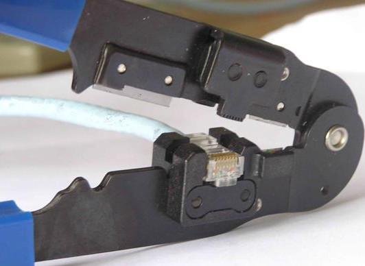 组装好内部之后,就需要将六类网线塞入水晶头外壳了,尽量塞到底,确保导线和金属片都接触到