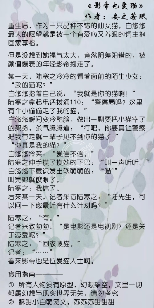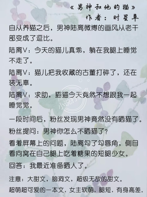 6篇BG「女主是猫」高口碑言情小说推荐合集|小说打捞馆