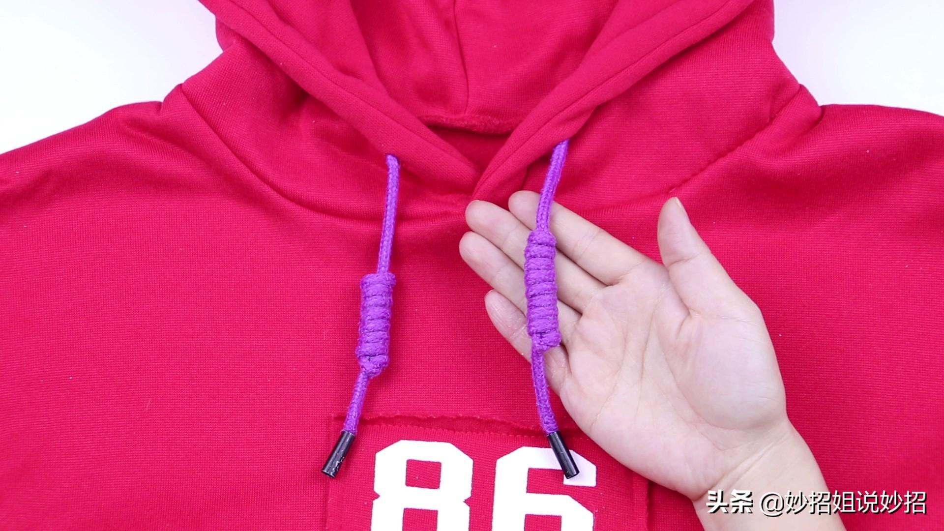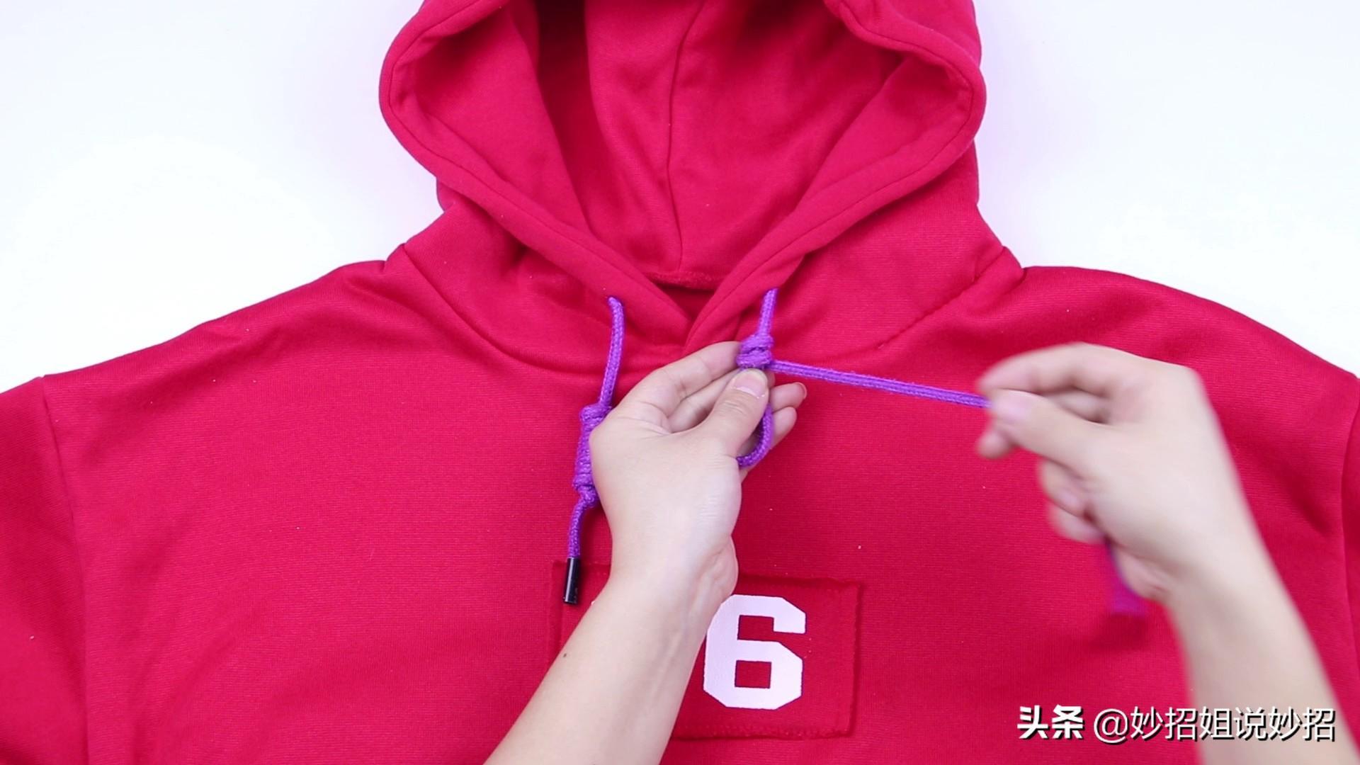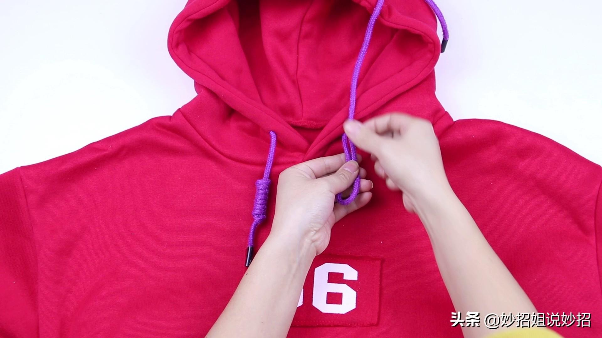 大家好,欢迎收看妙招姐说妙招,平时我们穿的卫衣,通常这两根绳子都比较长,今天教大家三种好看的帽绳结打法,让你的卫衣穿起来与众不同