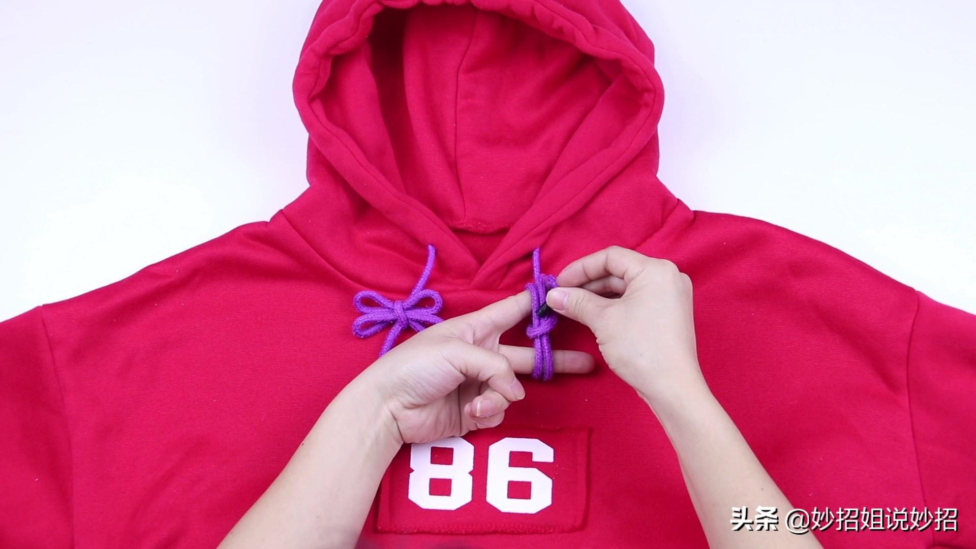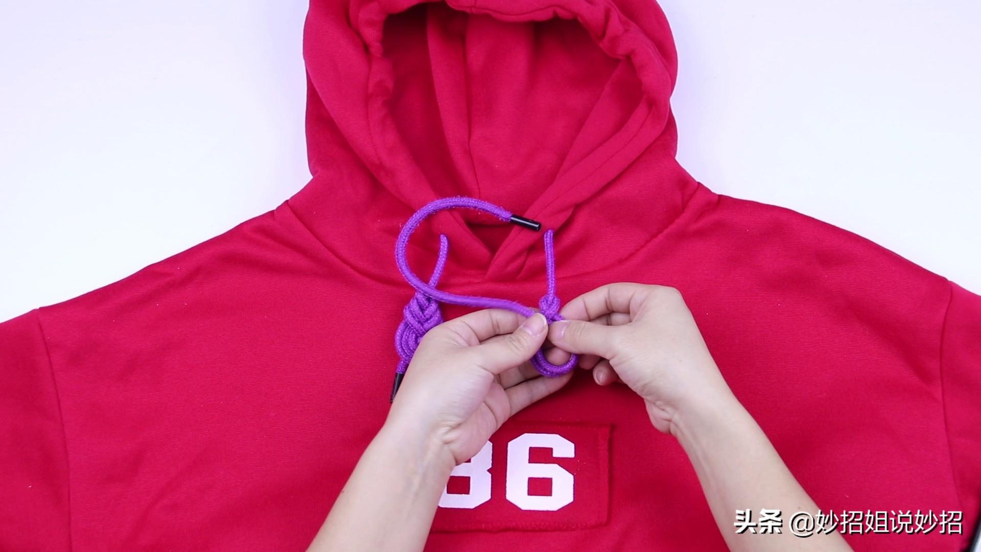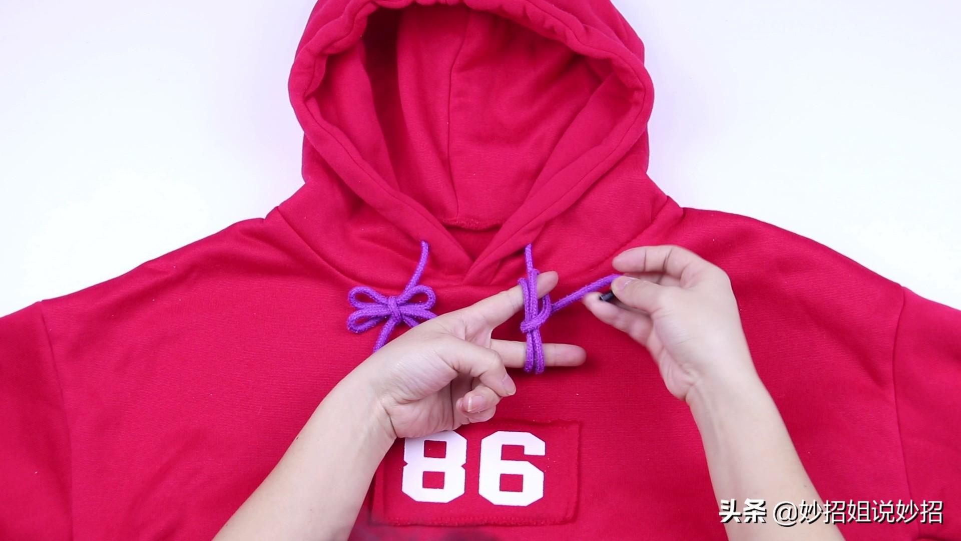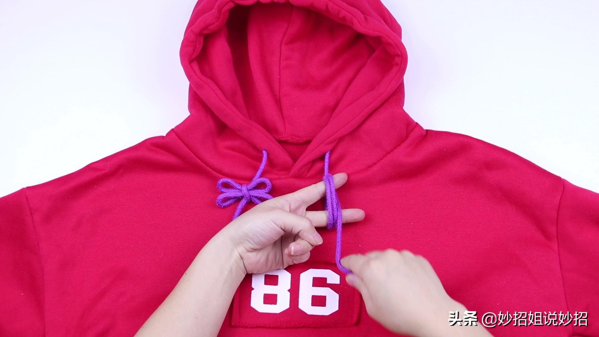 大家好,欢迎收看妙招姐说妙招,平时我们穿的卫衣,通常这两根绳子都比较长,今天教大家三种好看的帽绳结打法,让你的卫衣穿起来与众不同