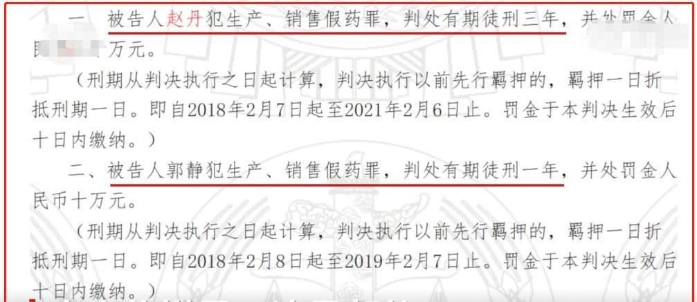 近日,本山传媒旗下艺人胖丫赵丹和郭静因贩卖假药被捕。赵丹获刑3年,罚款50万。郭静获刑一年,罚款10万。