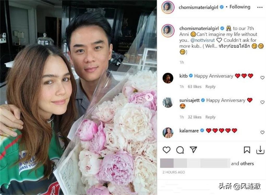 近日,Chompoo在个人社交平台上传了和Nott的温馨合照,以及女儿的可爱照片,并写下“不能想象没有你的生活,没有什么想要的了”的感人文字,以此来庆祝结婚七周年。
