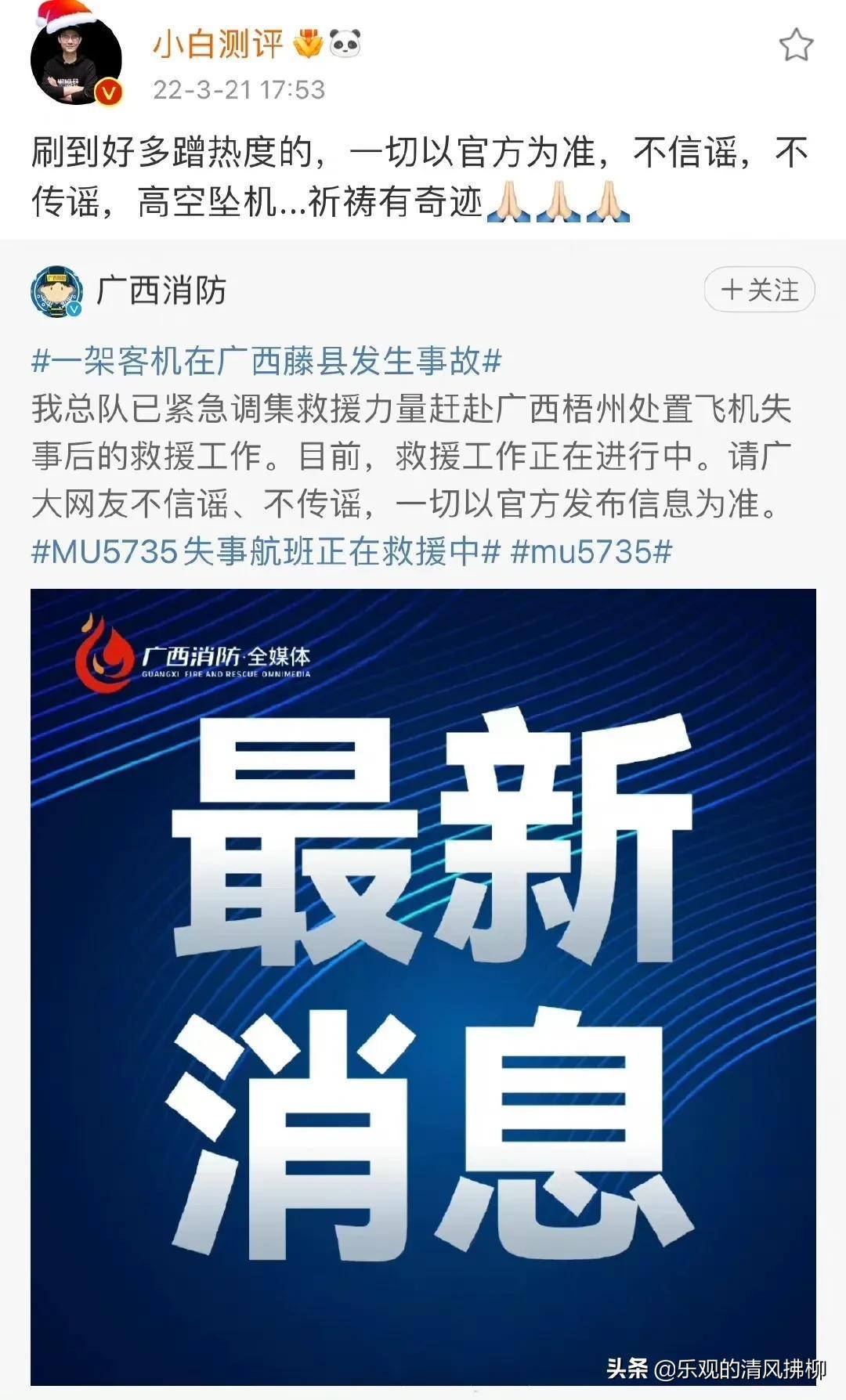 东航悲剧发生的那一刻,小白第一时间转发了官方微博,希望大家不传谣不造谣不要蹭热度,还说要为游客祈祷。