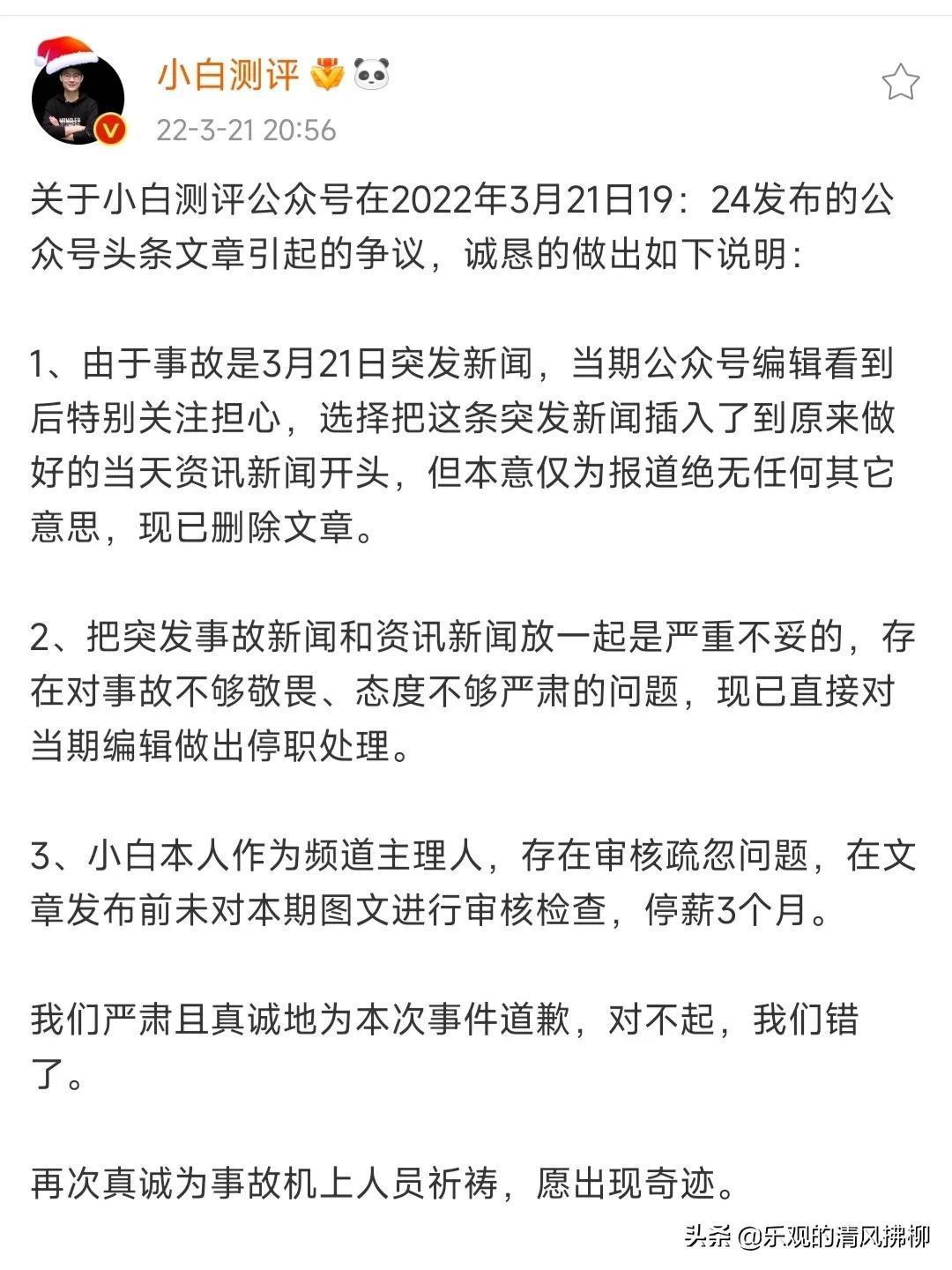 东航坠机的悲剧让人痛心不已,没想到小白测评却耍起了小聪明搞起了灾难营销。如此蹭流量、博眼球、无底线的行为,实在让人难以接受。