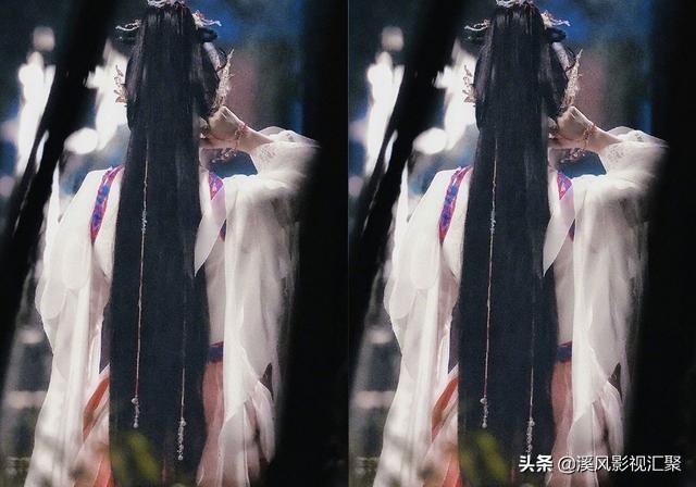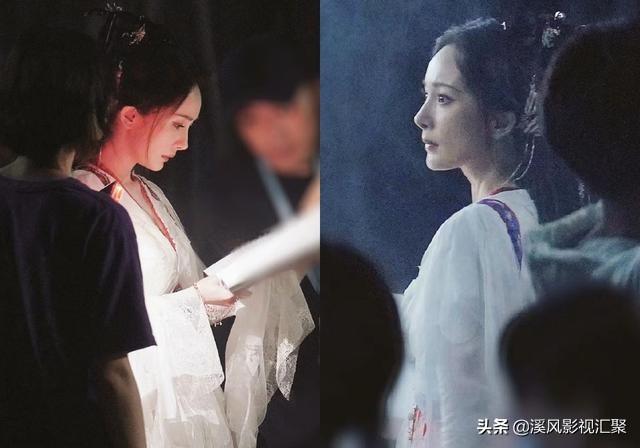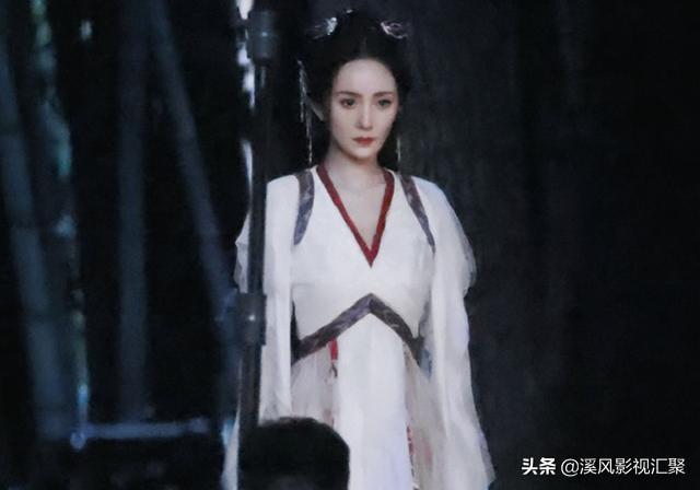 杨幂饰演的是女主涂山红红,这套是官方发的白衣定妆照吧。饭拍图的氛围,比官方的修图水平高得多,看起来自然多了。发型还不错,后面有发髻,搭配了一些金属的发饰。