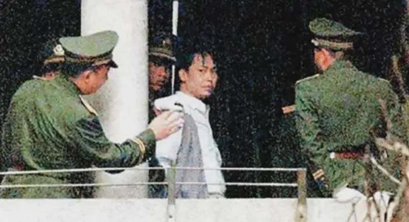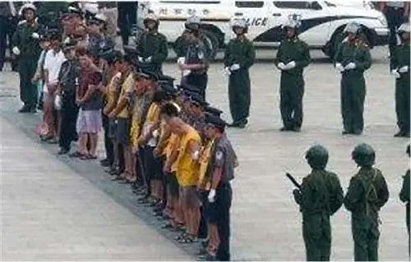 他的脸上带着笑容,却能让人明显感觉到他心里的苦楚和失落。因为此刻他即将出发,在百余名武警的押解下前往刑场。