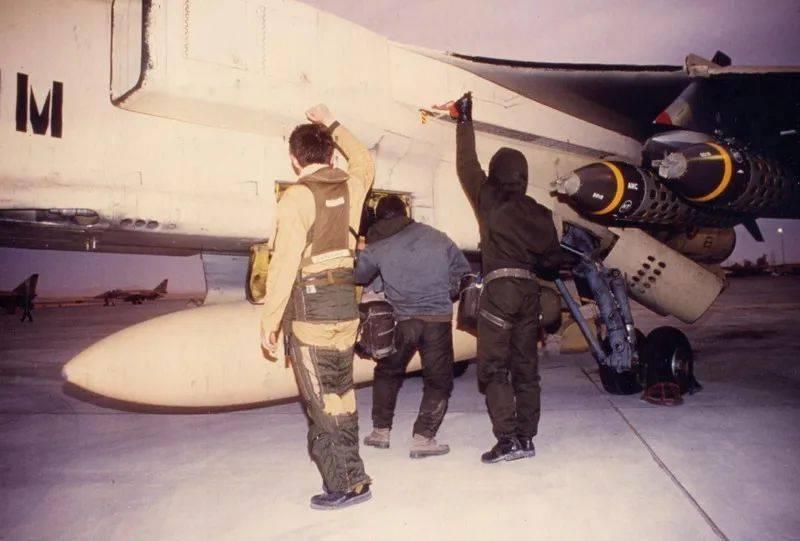 那天晚上的第一次警报之后,人们在掩体内呆了将近90分钟。然后,地勤们在混乱中直奔停机坪,为“美洲虎”的首次任务做准备。大约在凌晨3点,他们首先为飞机挂载了副油箱,然后是空空导弹和照明弹,最后再在翼下挂载炸弹。整个过程花了很长时间,因为被连续几次“飞毛腿”警报打断,每次都要大约损失20分钟。