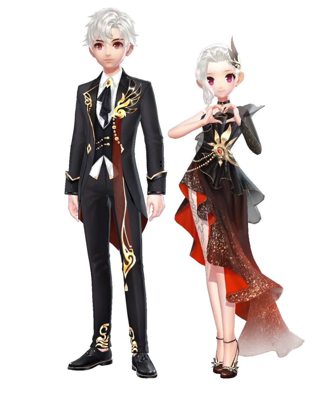 黑金色点缀的燕尾服与礼裙高贵优雅,精巧的配饰衬出一丝性感,宛如暗夜中的玫瑰一般耀眼。