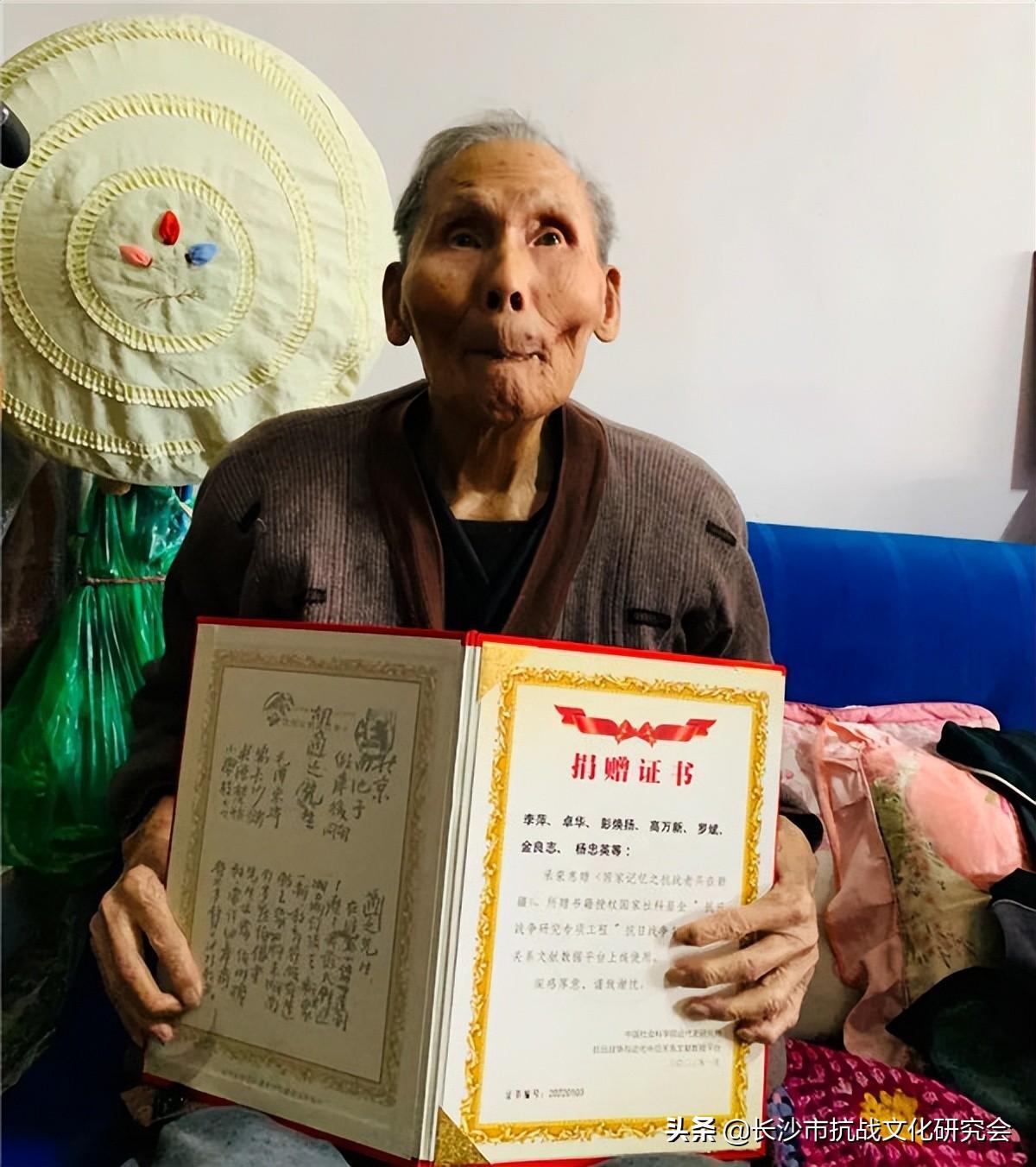 我们最近一次去看望彭老是在三个月前的2022年1月29日,当时,“抗日战争与近代中日关系文献数据平台”把《国家记忆之抗战老兵在新疆》一书收录到了该平台,("抗日战争与近代中日关系文献数据平台"是国家社科基金“抗日战争研究专项工程”的一部分,由中国社会科学院、国家图书馆、国家档案馆主办。)我受该平台之托,把平台发给老兵的“捐赠证明”送到了老兵手中,因这本上线的图书收录了彭焕扬老兵的抗战故事,彭老当时很认真的看着捐赠证明上的一字一句,我告诉老兵说,咱们新疆的老兵故事,已经放到这个国家数据平台上了,全球开放,中国人、外国人都能看到,还是免费的,虽然当时彭老连说话都已经很费力了,但他眼神发亮,很开心地向我竖起了大拇指,我知道,他倍感自豪。