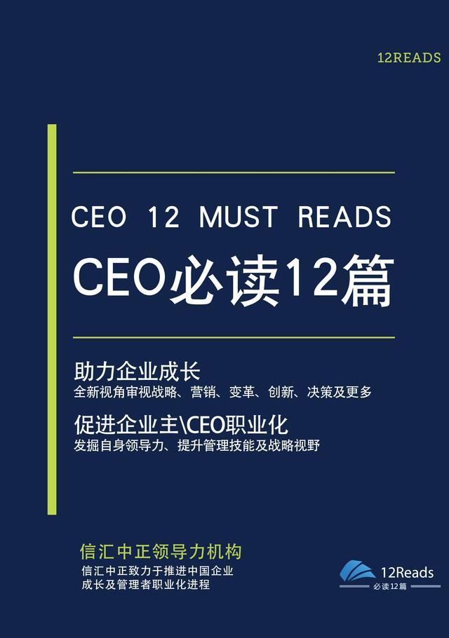 该书也同样仅可从其官网购得。本书提供了CEO必备的12篇重要文章,涵盖了战略、执行力、创新等方面的关键议题,对于经理人们来说具有重要的启发和指导作用。